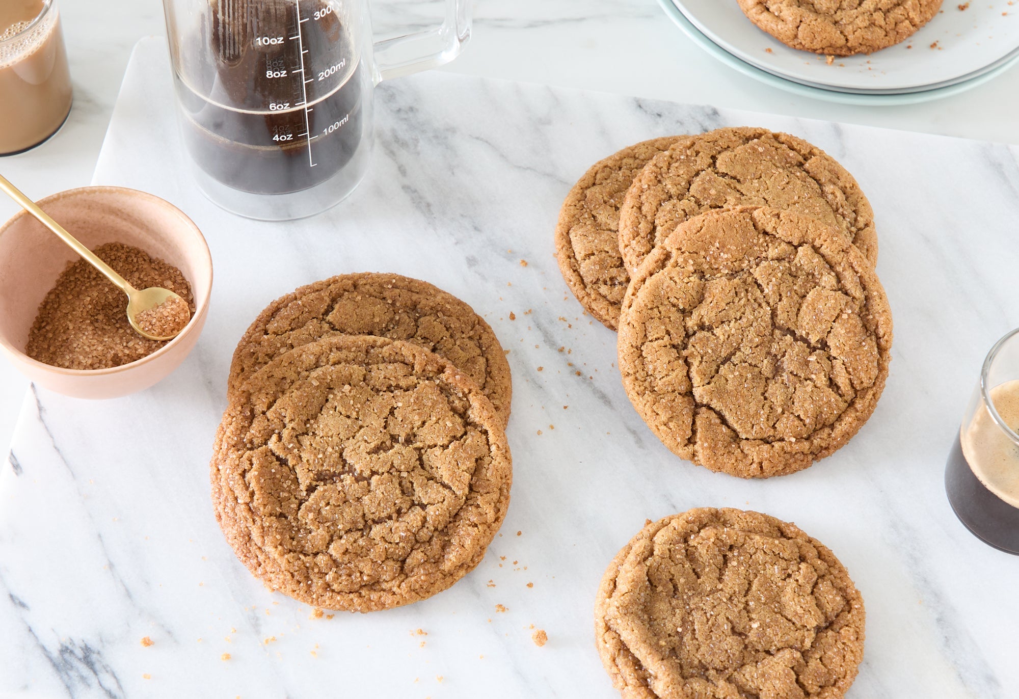 Heat the oven 350ºF. Line 2 baking sheets with parchment paper or nonstick silicone mats. Scoop 1 ½ Tbsp. balls of dough (about 65 g each) into balls. Dip half of each dough ball into the dipping turbinado sugar, and place the balls 2 inches apart on the baking sheets. Very gently press down on each dough ball so they don’t roll on the pan. Set aside to rest at room temperature for 10 minutes before baking.
