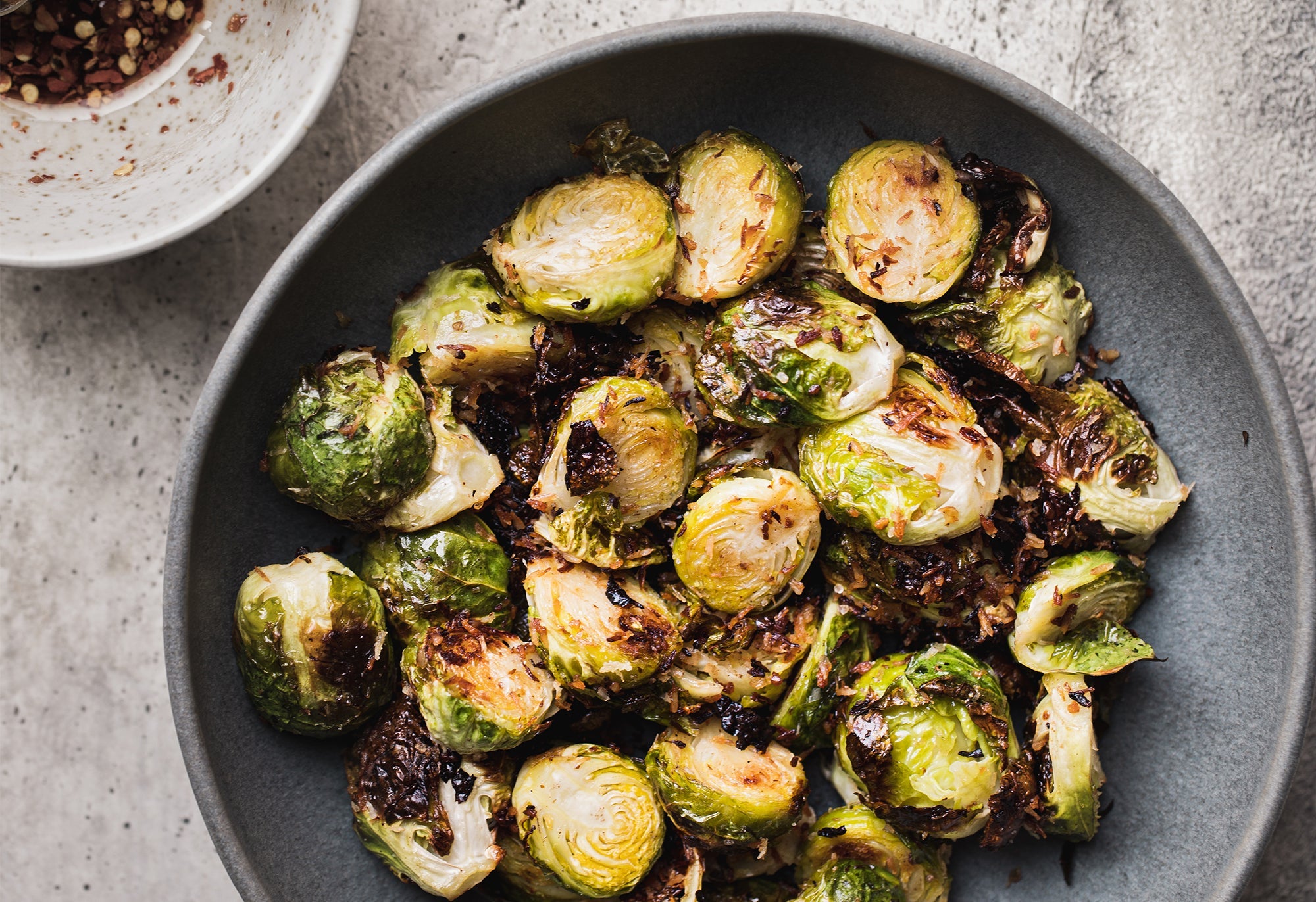 Toasted coconut shreds add an unexpected twist to classic roasted Brussels sprouts. It’s a surprisingly wonderful flavor pairing, pulled together by a spicy honey-balsamic dressing.