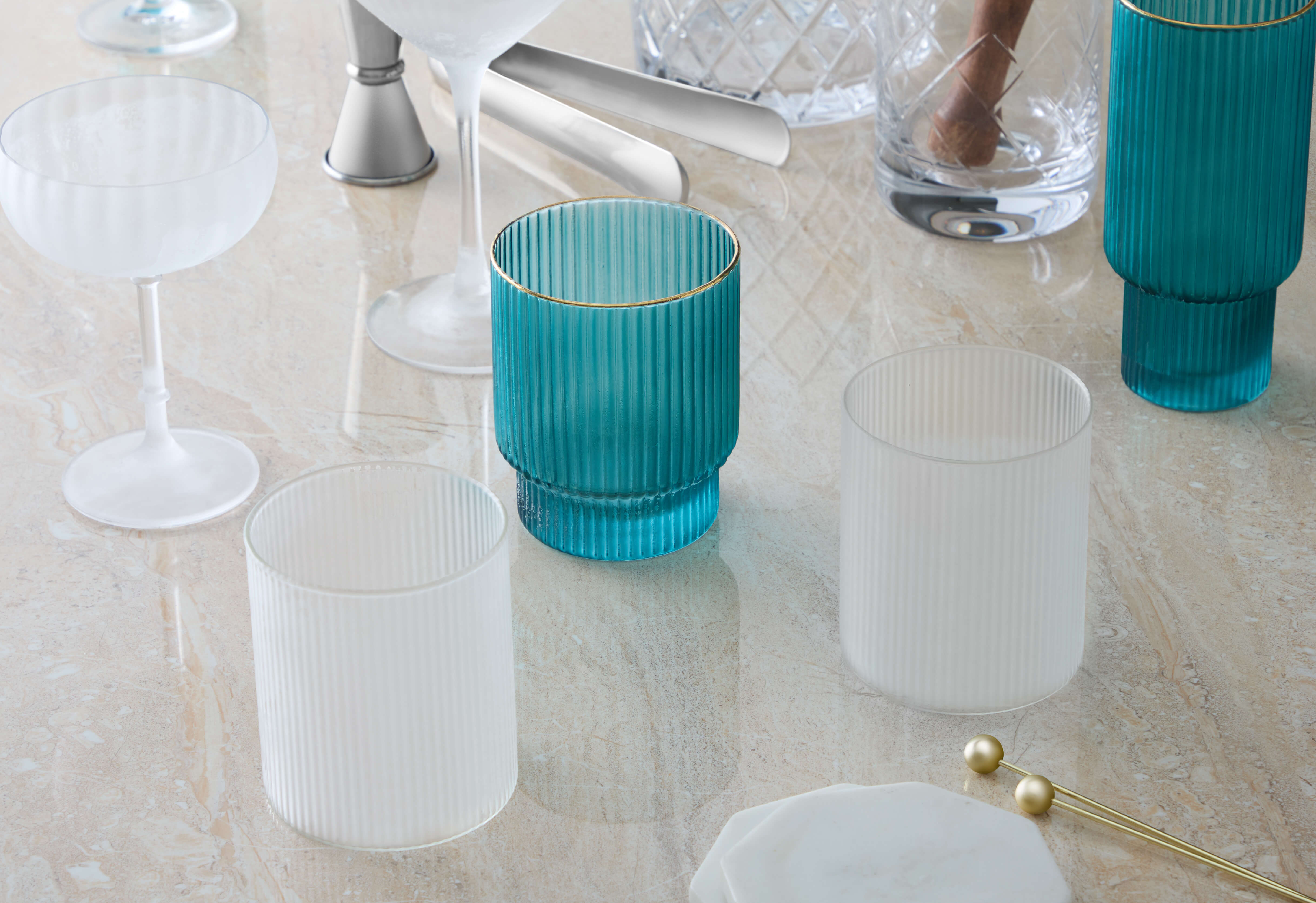 For a frosted look, you should wash your glass right before sticking it in the freezer. The thin coat of water that remains after drying with a towel gives the glass it’s chilly, inviting haze.
