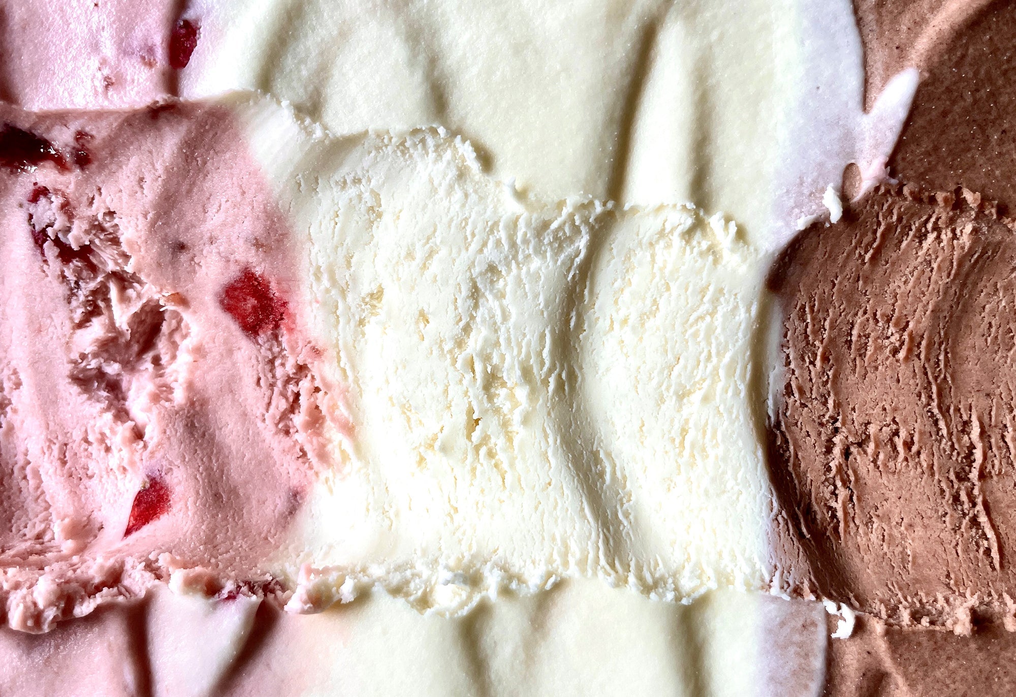 The classic trifecta of homemade ice cream favorites–and no special equipment required! All you need to make this rich, smooth, and decidedly ice cream-y frozen mousse are the ingredients and a few basic kitchen tools. All three flavors of the ice cream begin with one simple base made of sweetened condensed milk, mascarpone cheese, and whipped cream. This base comes together in a snap.