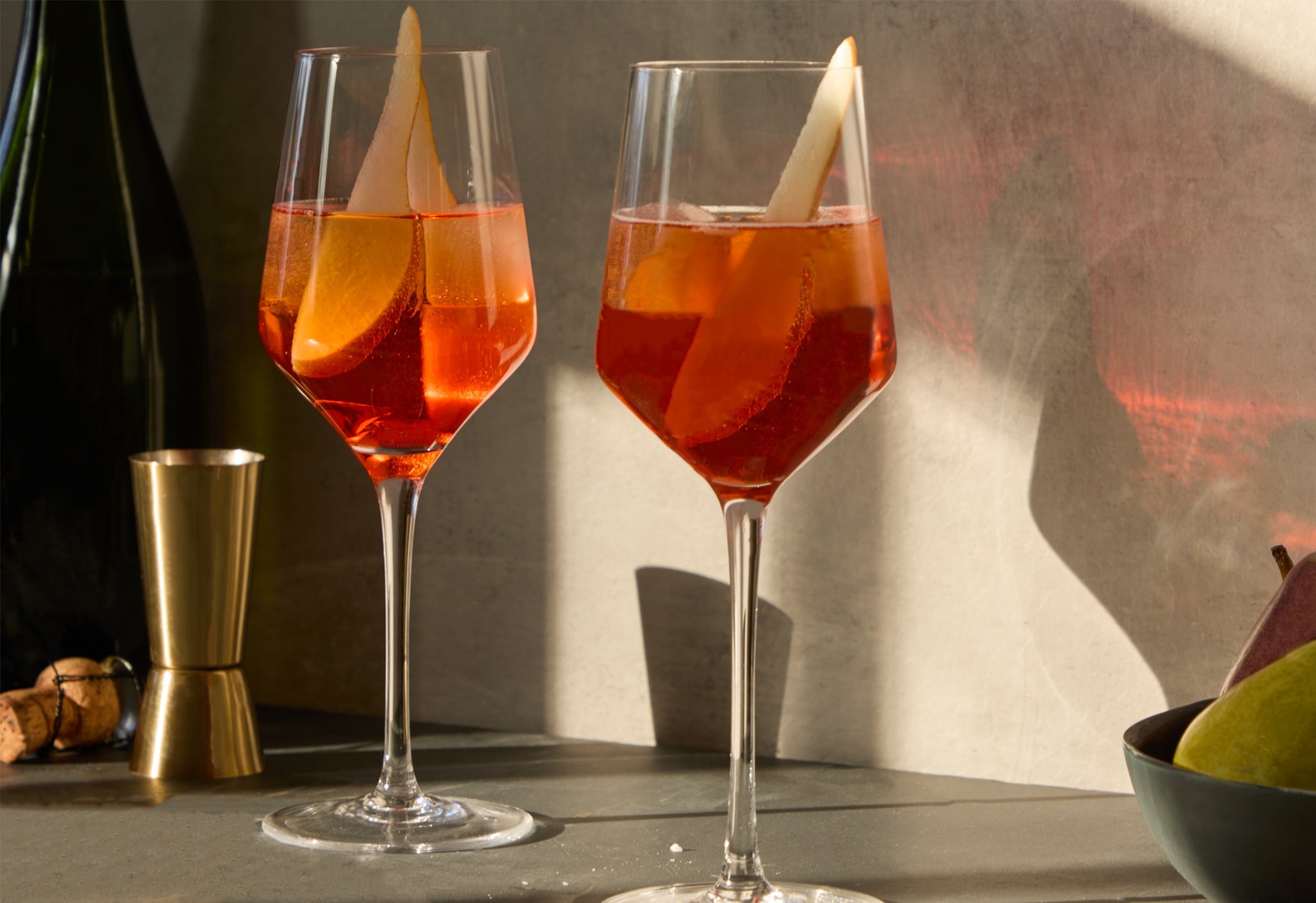 Fill a large wine glass with ice. Pour Aperol and pear cider into the glass. Top off with the club soda and garnish with a pear slice. Cheers!