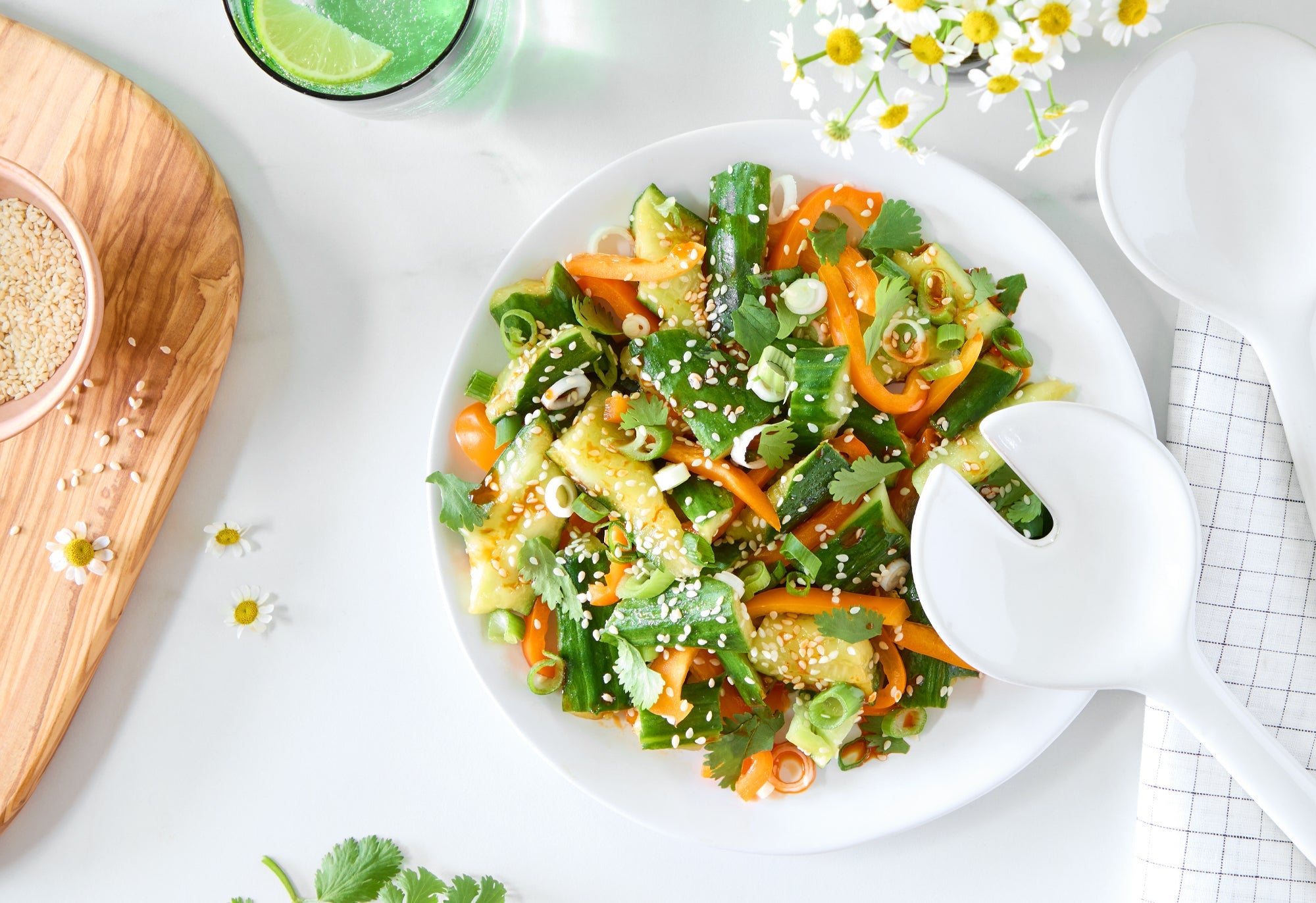 This salad has some real crush-the-patriarchy energy. (Pulverize those phallic symbols!) It’ll also cool you off while boosting your physical and mental health. Smashing the cucumbers is not only cathartic, it gives these cukes a tantalizing texture and preps them (by cracking the cell walls) to really soak up zesty dressing.