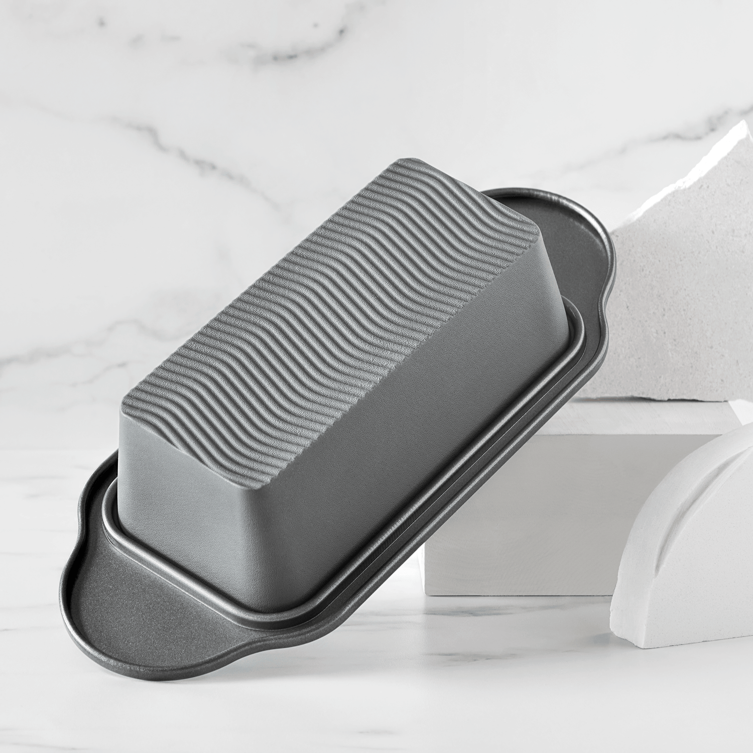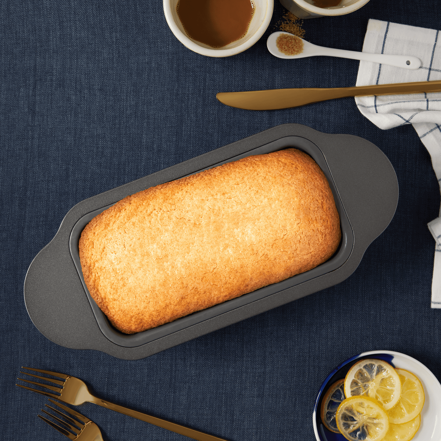 We've seen into the future—and there's a perfect loaf with your name on it! Our loaf pan features an easy-grip carbon steel rim and a flexible silicone liner that crust won't cling to. Whether it's gooey banana bread or buttery brioche, the loaves pop right out, leaving nary a crumb behind. Check out our entire line of silicone and carbon steel bakeware.