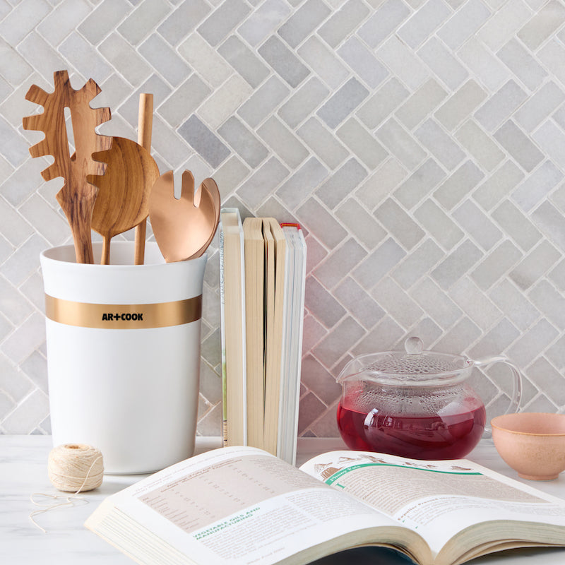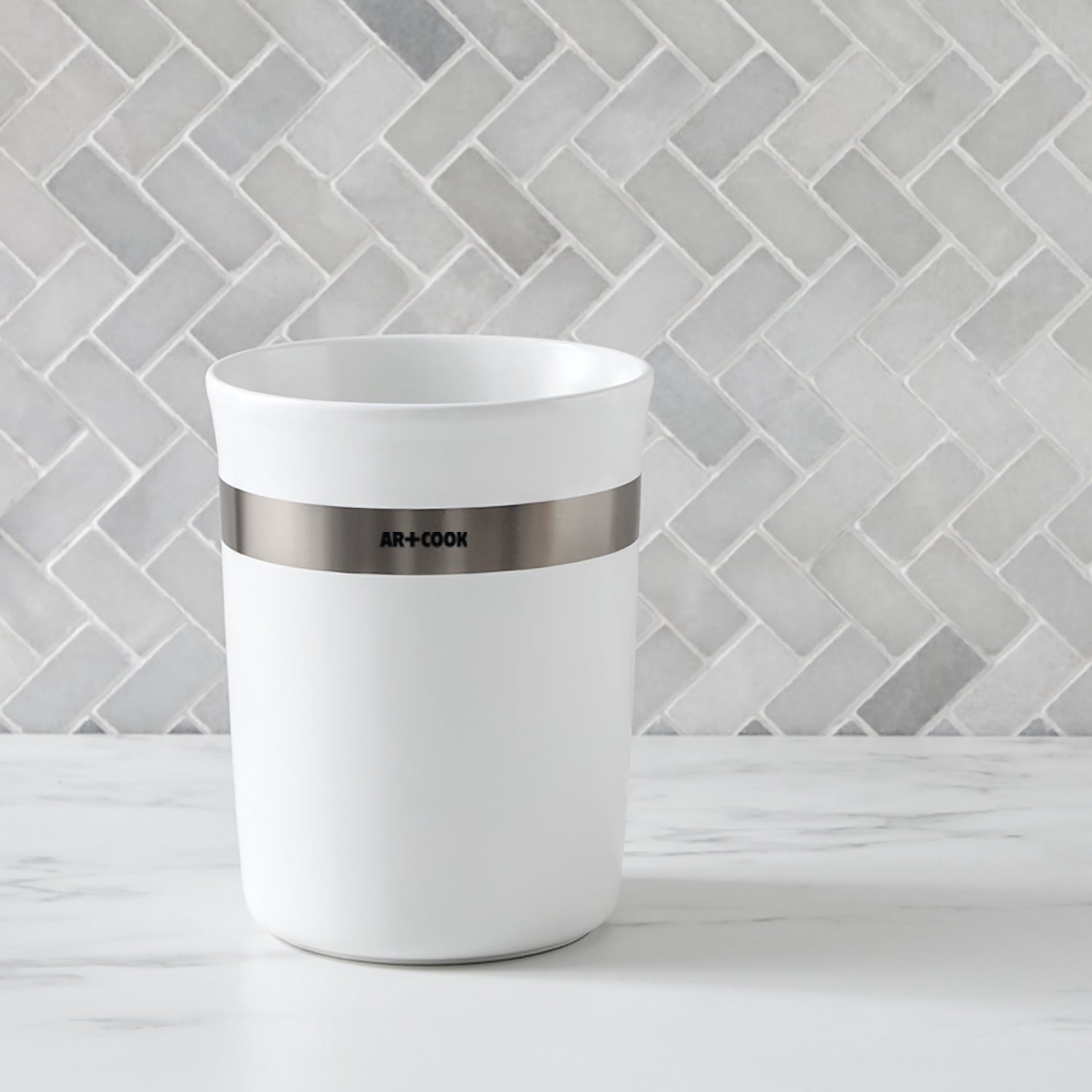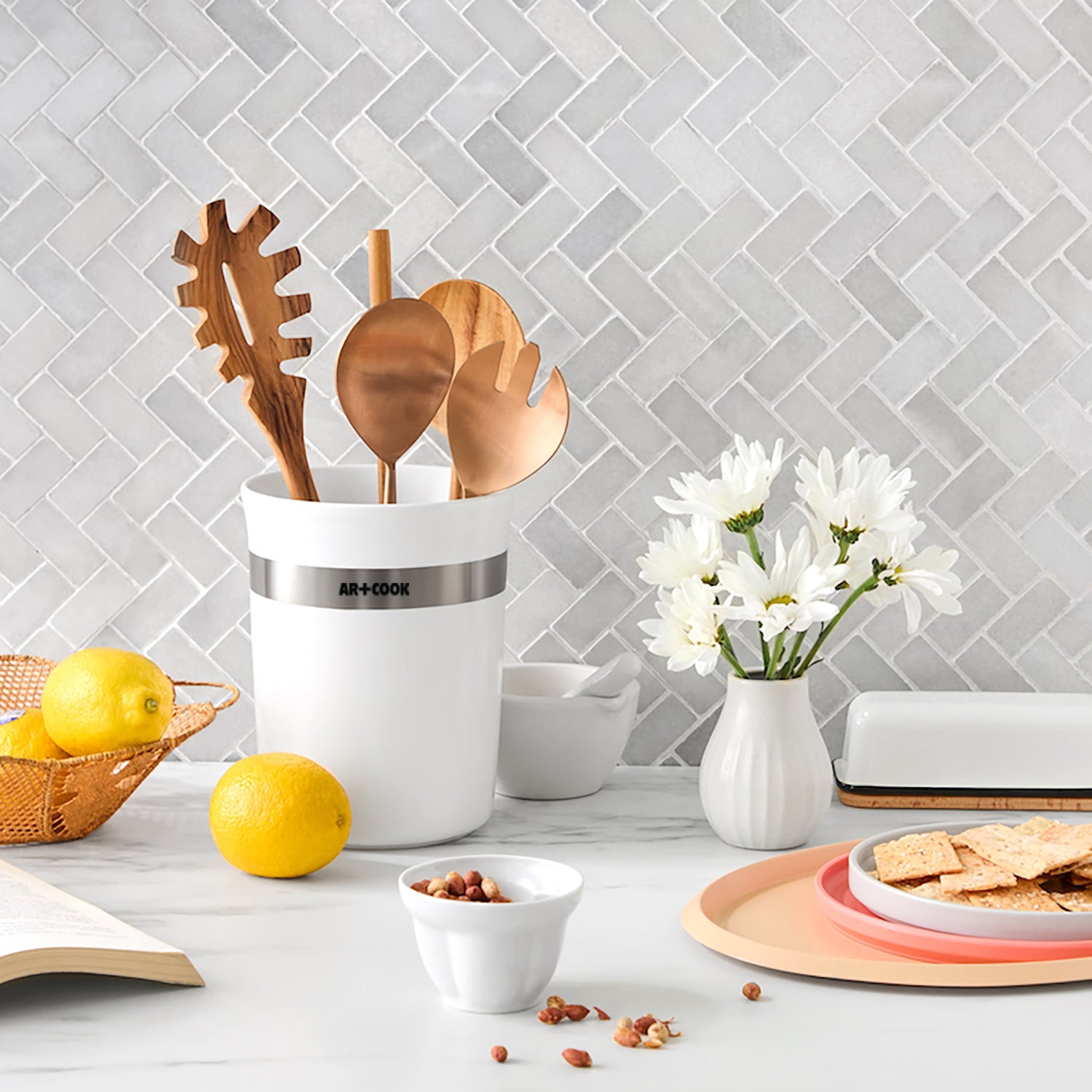 Your trusty spoons, spatulas, and whisks have a bright new home. Our white stoneware crock is ready to welcome your favorite utensils. Set it near the stove to keep your tools in easy reach.