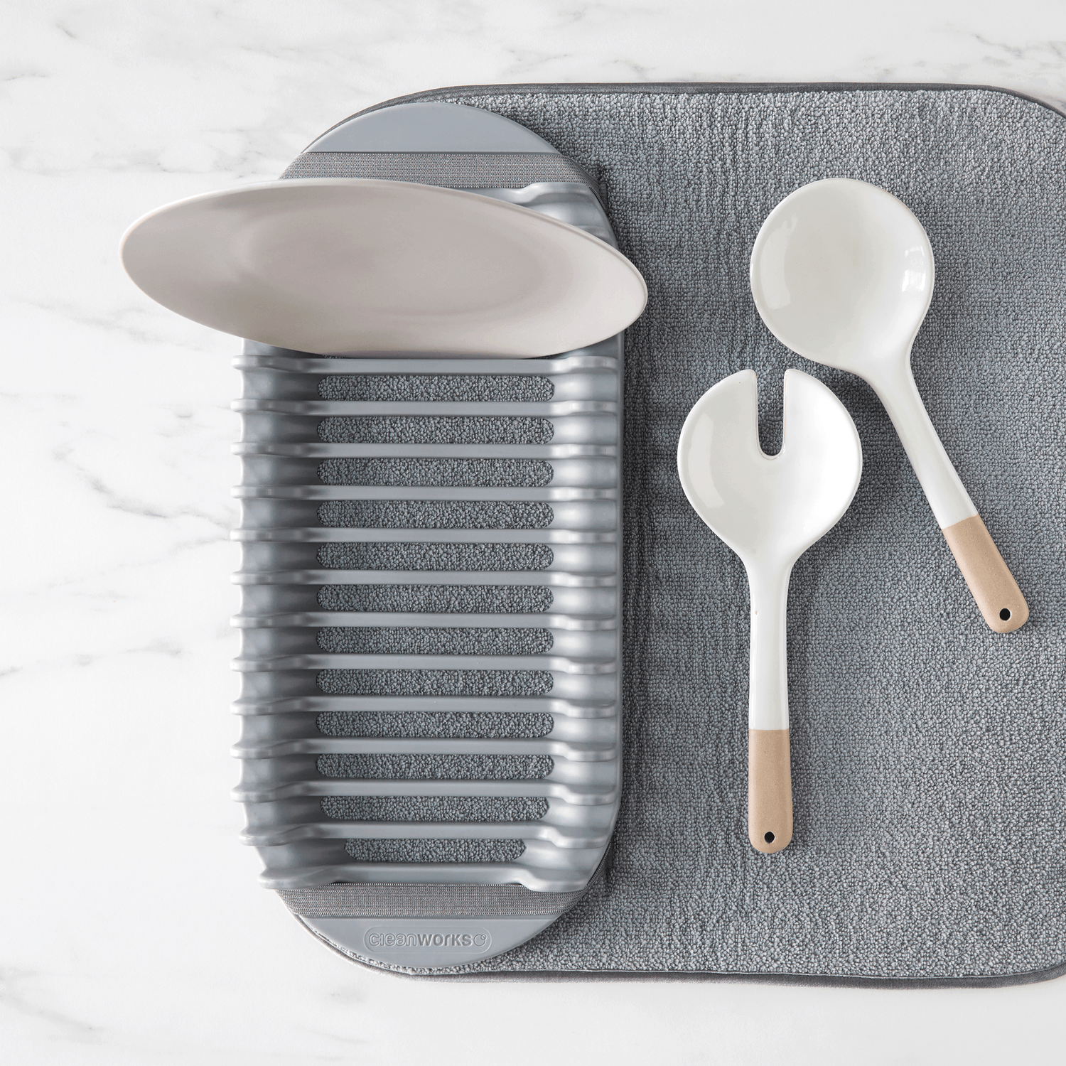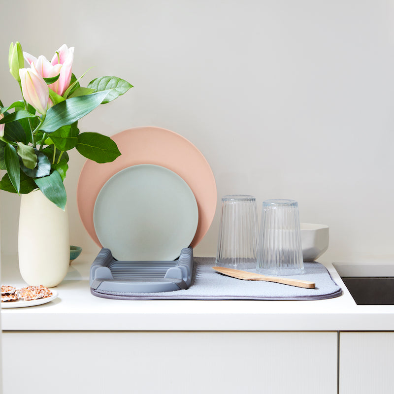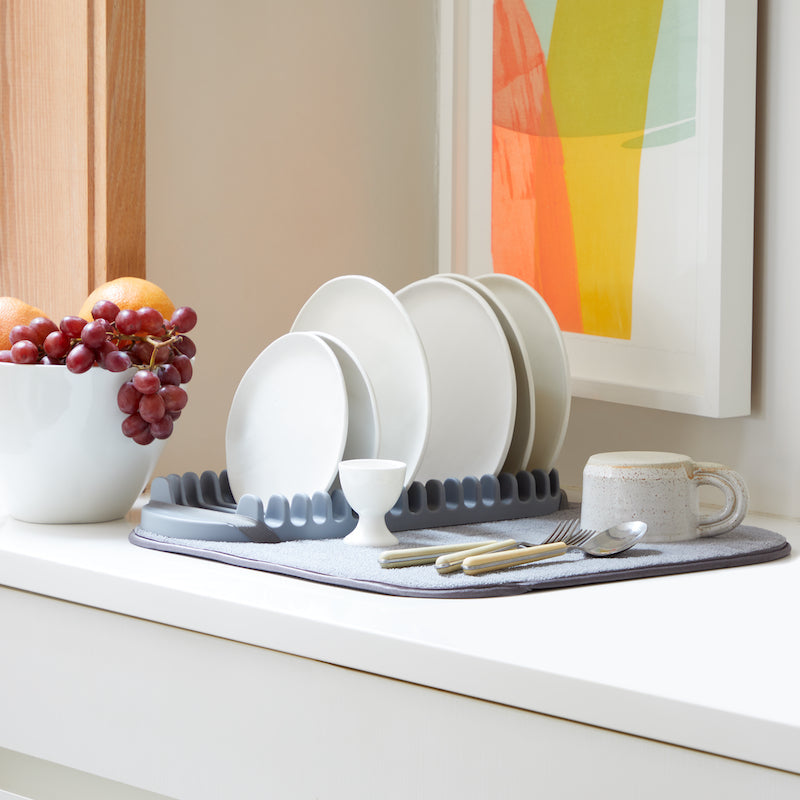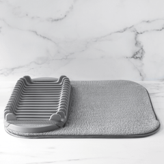 Our drying mat has grooves and grips to hold plates in place during the air-dry process. Perfect for your delicate and oversized items.