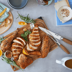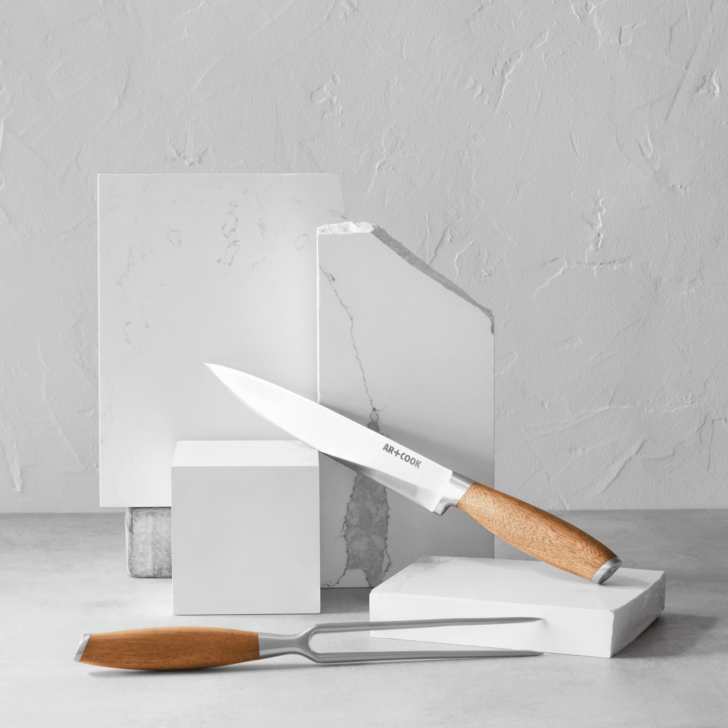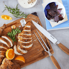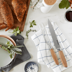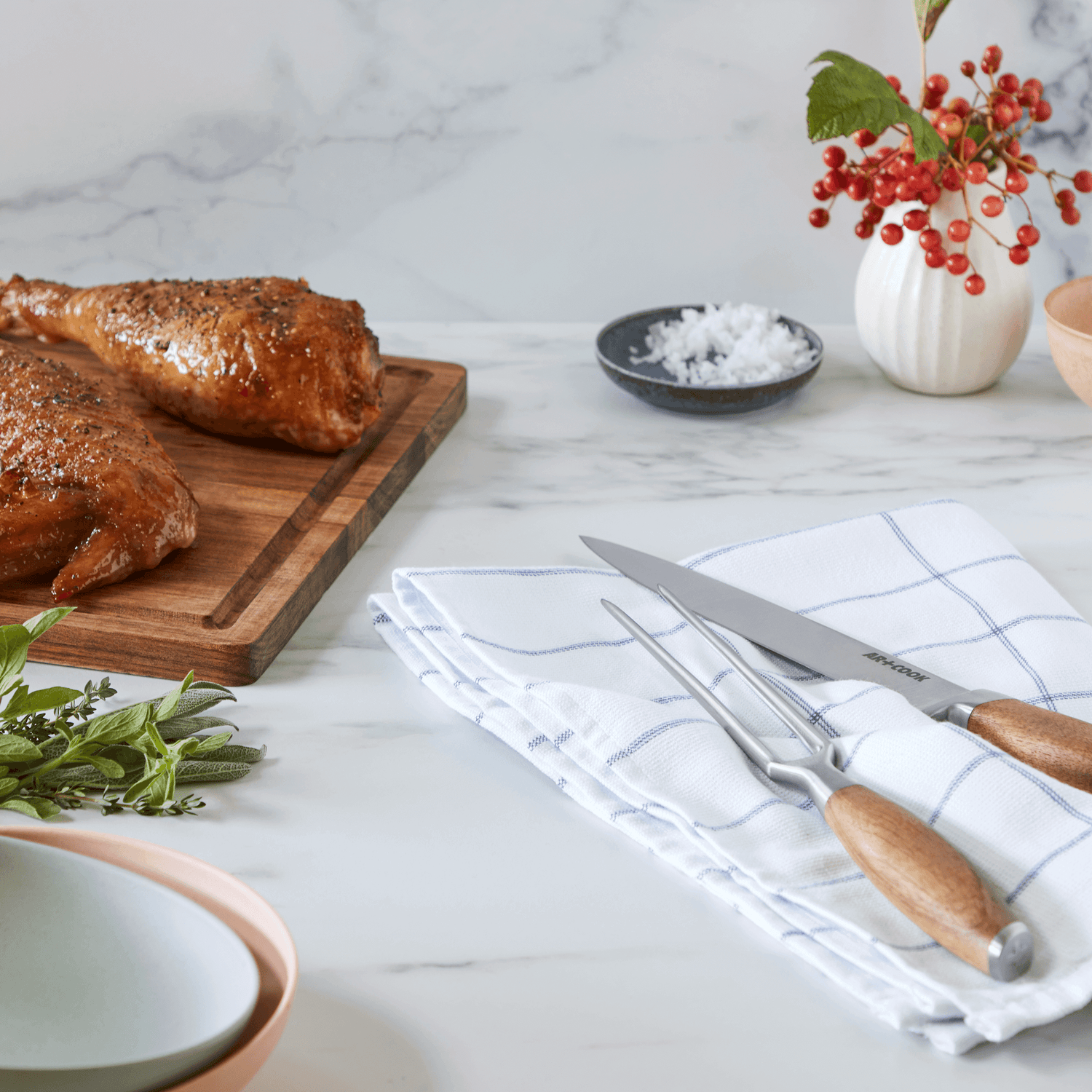 Fear not, our carving set is here to save the [holi]day! Whether your knife skills are beginner-level or advanced, you’ll be slicing with ease–even with the added pressure of hangry guests. This wood-handled duo combines extreme durability with a classic style, so you’ll look and feel like a pro.