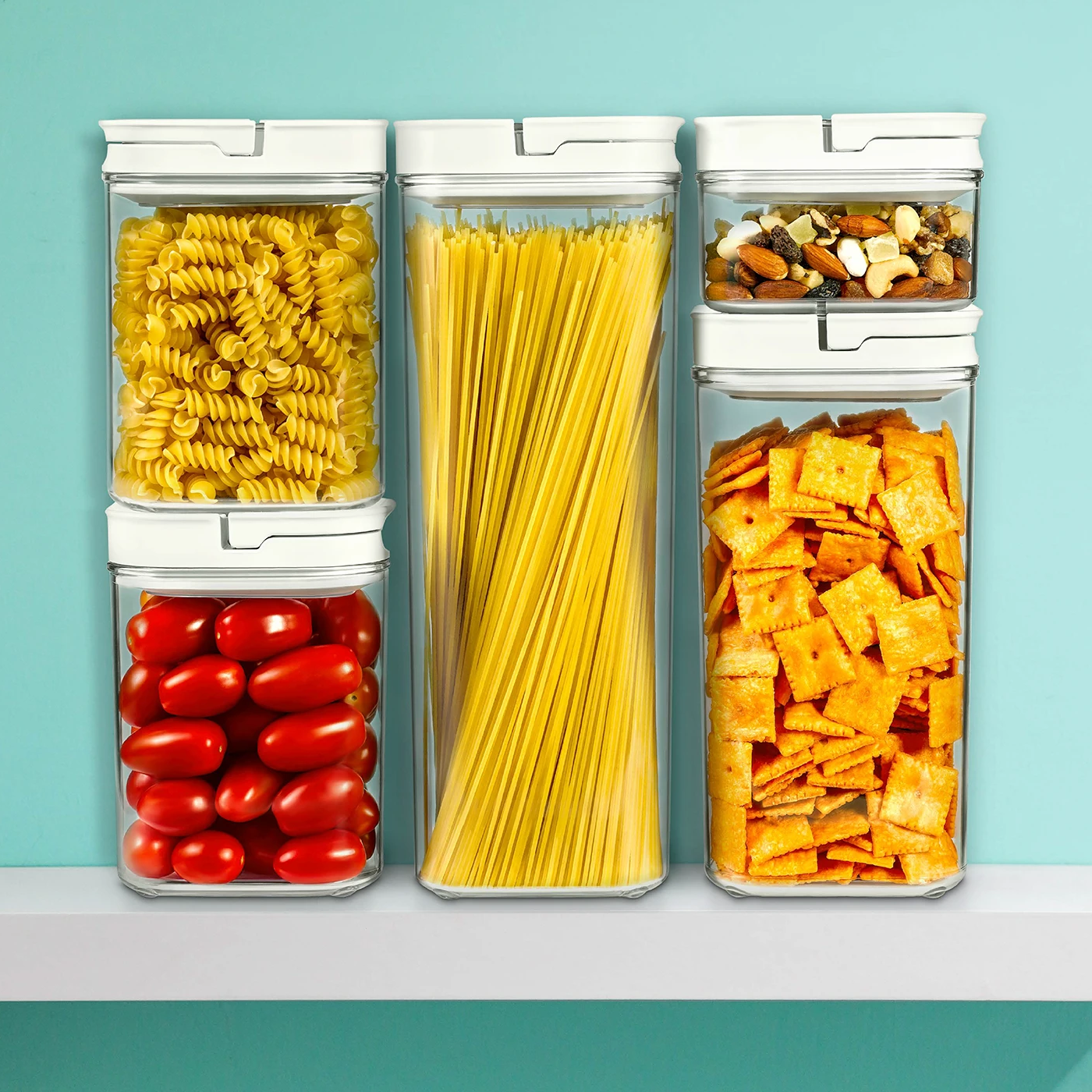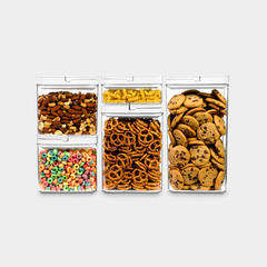 Uncovering the dead space in your kitchen is everything! Capitalize on unused nooks and crannies with this stackable dry food storage set. Designed in varying sizes so you can maximize overlooked space in your cabinets. Equipped with airtight locking lids with a silicone ring, food stays fresh longer. Available individually and as a set