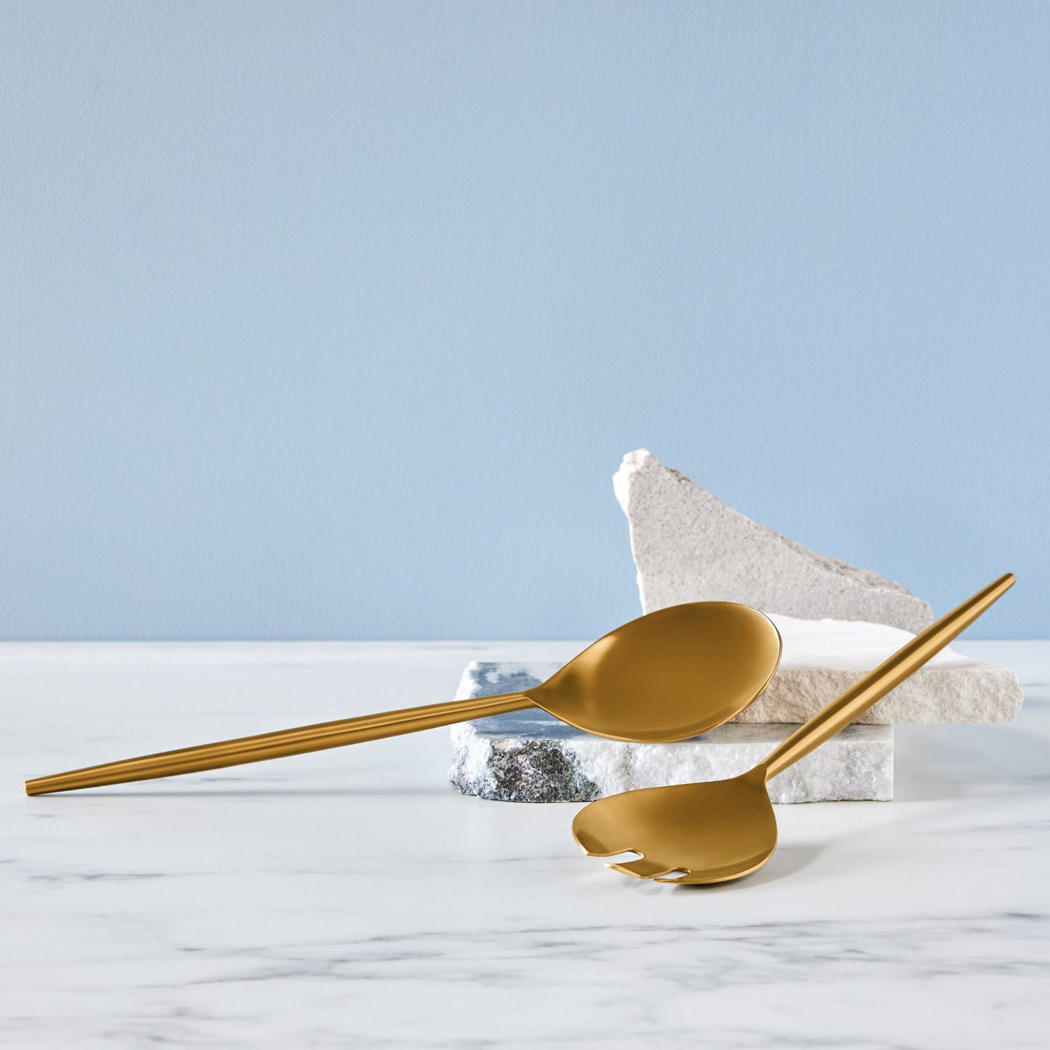 Serving flatware gets a glam update in go-with-everything gold. This set adds just enough dazzle to holiday meals and everyday dinners alike. Simple yet elegant the duo is part of our new collection of gold-tone flatware and accessories.
