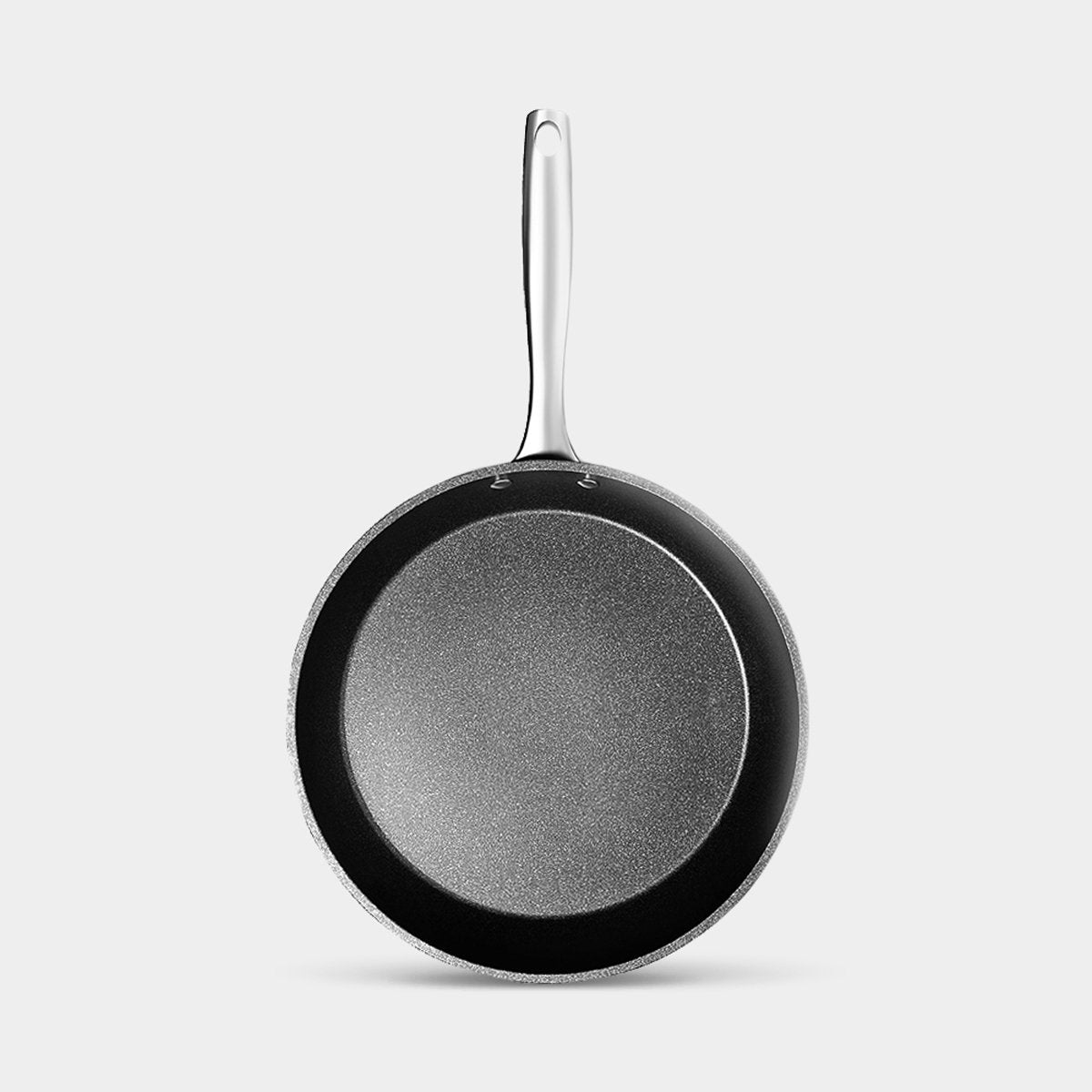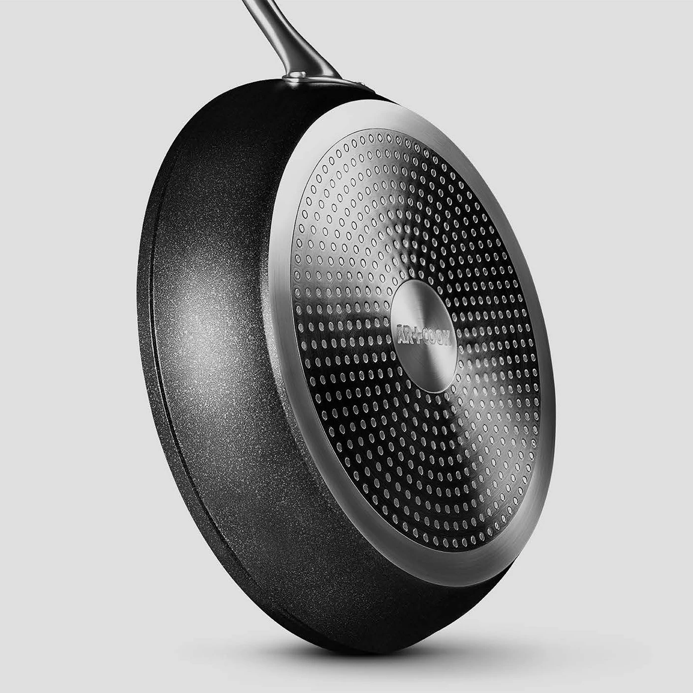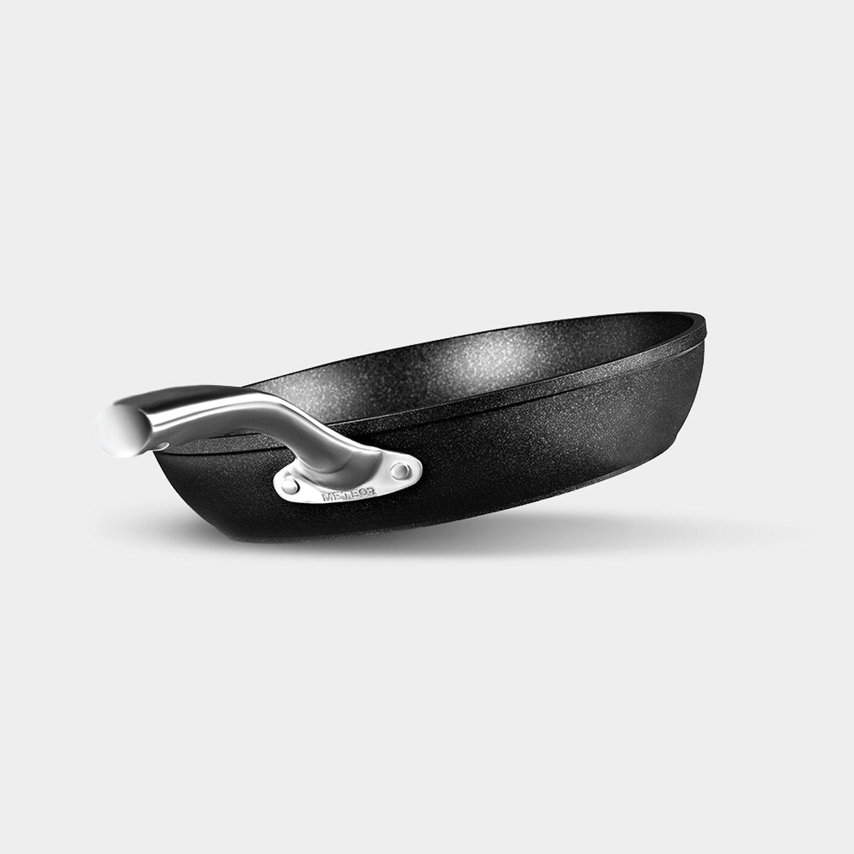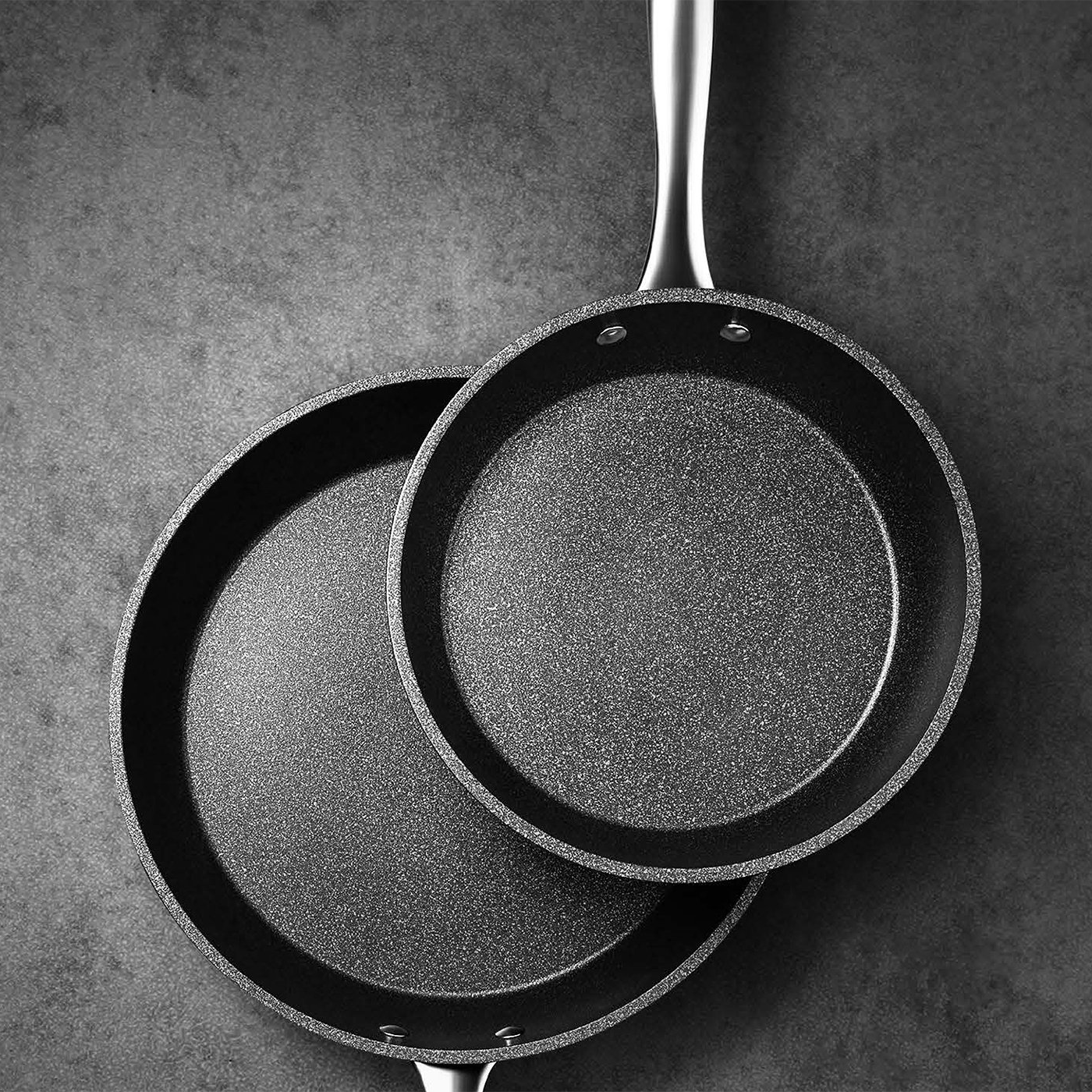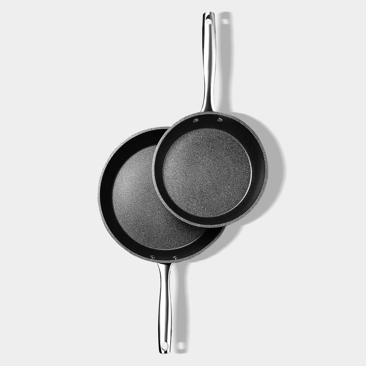 Make your next meal a celestial event with the most durable frying pan on the planet. The Meteor is constructed in durable forged aluminum with a rugged surface like a cosmic meteor! The non-stick coating lets you be in control of your culinary creations even when you’re cooking at high temperatures. Crank up the heat up to 500-degrees! The rough surface makes The Meteor more resistant to abrasions, while the premium construction gives you the versatility of delicate frying to slow roasting. Designed for optimum performance for all cook tops. The set includes a 12” and 9.5” deep fry pan.