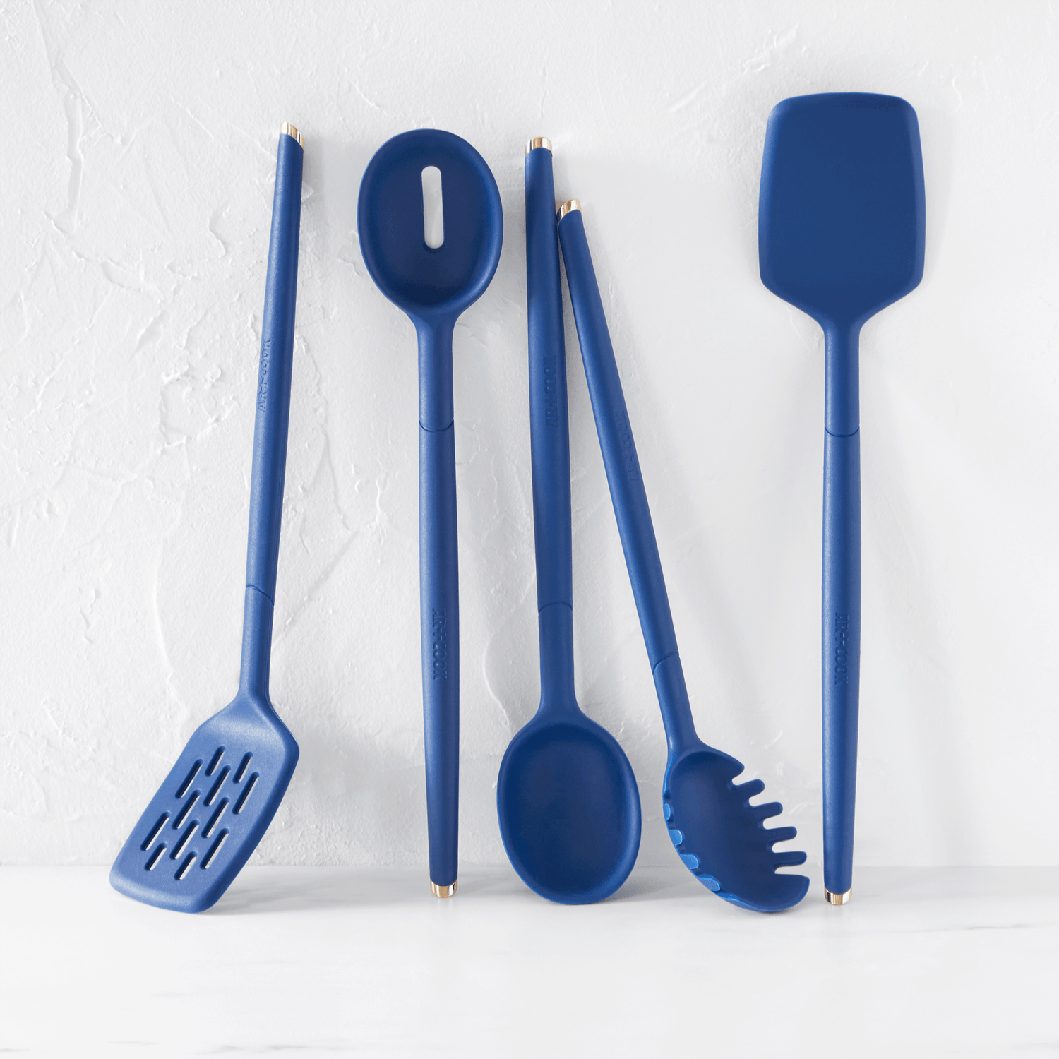 These silicone utensils feature a contemporary design and extraordinary colors. Heat resistant up to 400° F, the silicone head won't scratch your pots and pans. The non-slip handle provides a secure comfortable grip, and the hang hole makes for easy storage.