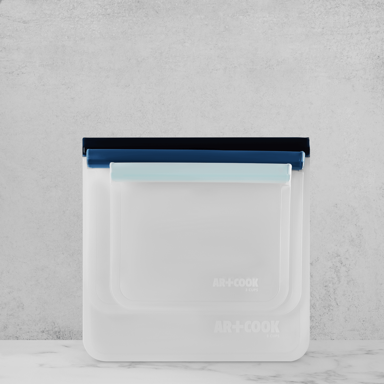 Say goodbye to disposable plastic baggies with our reusable, leak-proof silicone storage pouches. Perfect for packing snacks and sandwiches, marinating meats, and freezing fruits and veggies. They’re also handy for toting travel essentials in your handbag and for keeping the kids’ backpack mess somewhat organized.