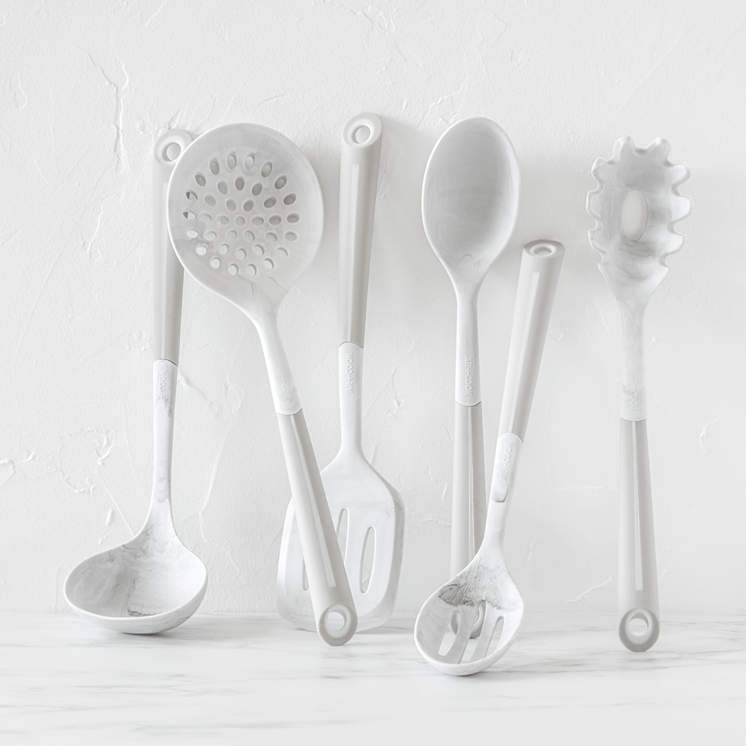Set includes: Pasta Server, Solid Spoon, Slotted Spoon, Skimmer, Soup Ladle, and Slotted Turner.