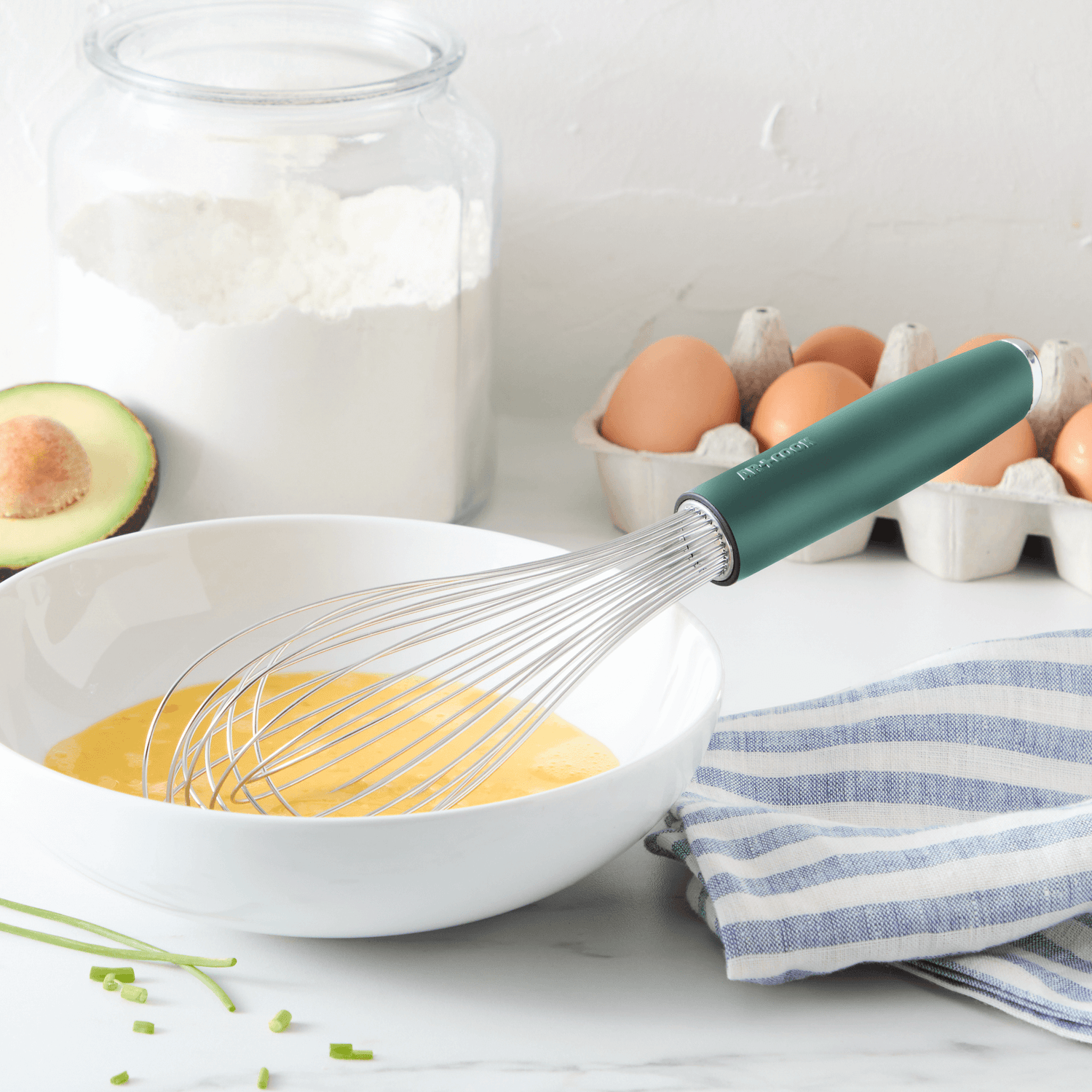 The Standard Whisk is a kitchen staple that everyone needs. With this product, the opportunities are endless. Whether you’re an avid baker or only pull out a whisk every so often to scramble some eggs, there is no denying that having a solid standard whisk will improve the quality of your work. Ideal for perfecting your French omelet recipe, mastering the macaron, and whipping heavy cream, your kitchen drawer is begging for this addition.