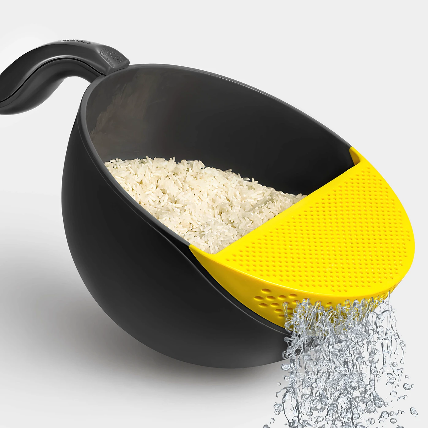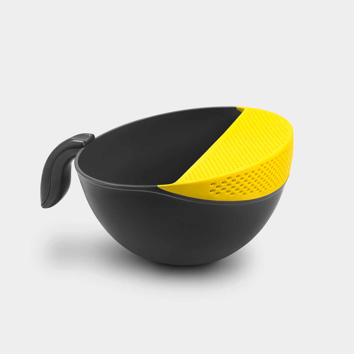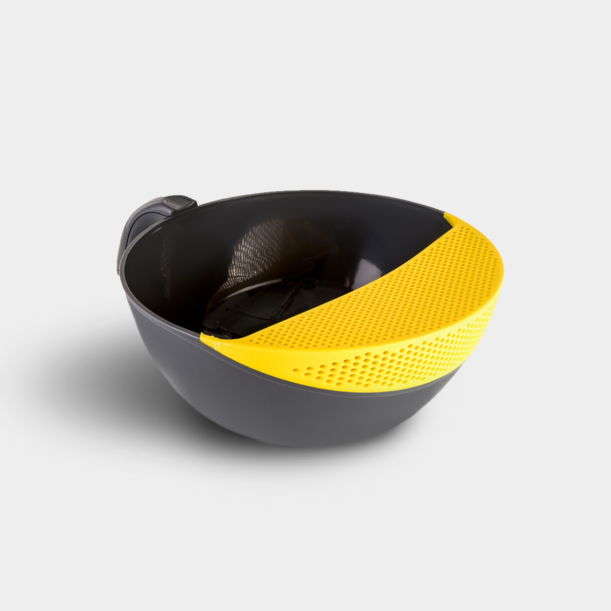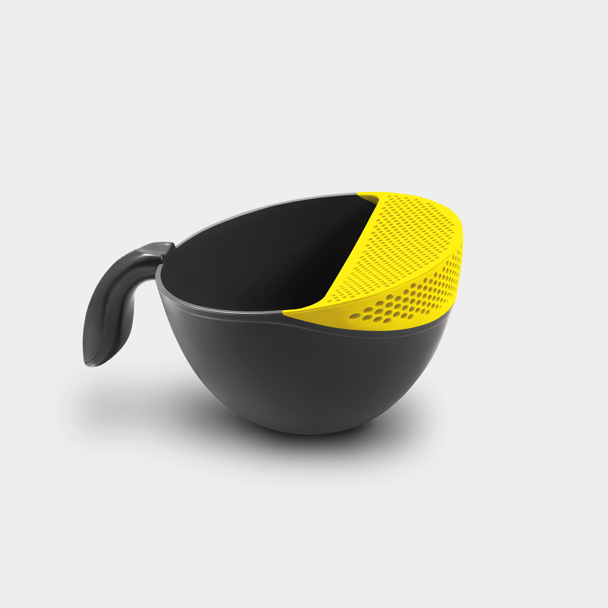 Dirt is not a spice. When your artichoke needs a soak or your cauliflower wants a shower, who you gonna call. Not that old colander it leaks water faster than you can say clean greens. That's why we developed our unique fresh produce bath. It lets fruit, veggies, salad fixings, herbs and pulses stretch out and rinse the sand from between their toes. When they're good and ready, the innovative hopper-strainer drains off the dirty water without letting a single bean escape. The 2-in-1 Washing Bowl & Strainer is perfect for washing food such as beans, chickpeas, sprouts and chopped fruit and vegetables. The deep, angles bowl lets you fill it to the rim while the flexible thermoplastic rubber strainer is a breeze to clean.